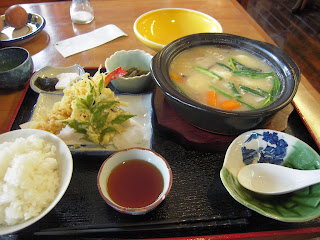 国道211号から210号に渡って道の駅うきは、で昼飯にだご汁定食。
