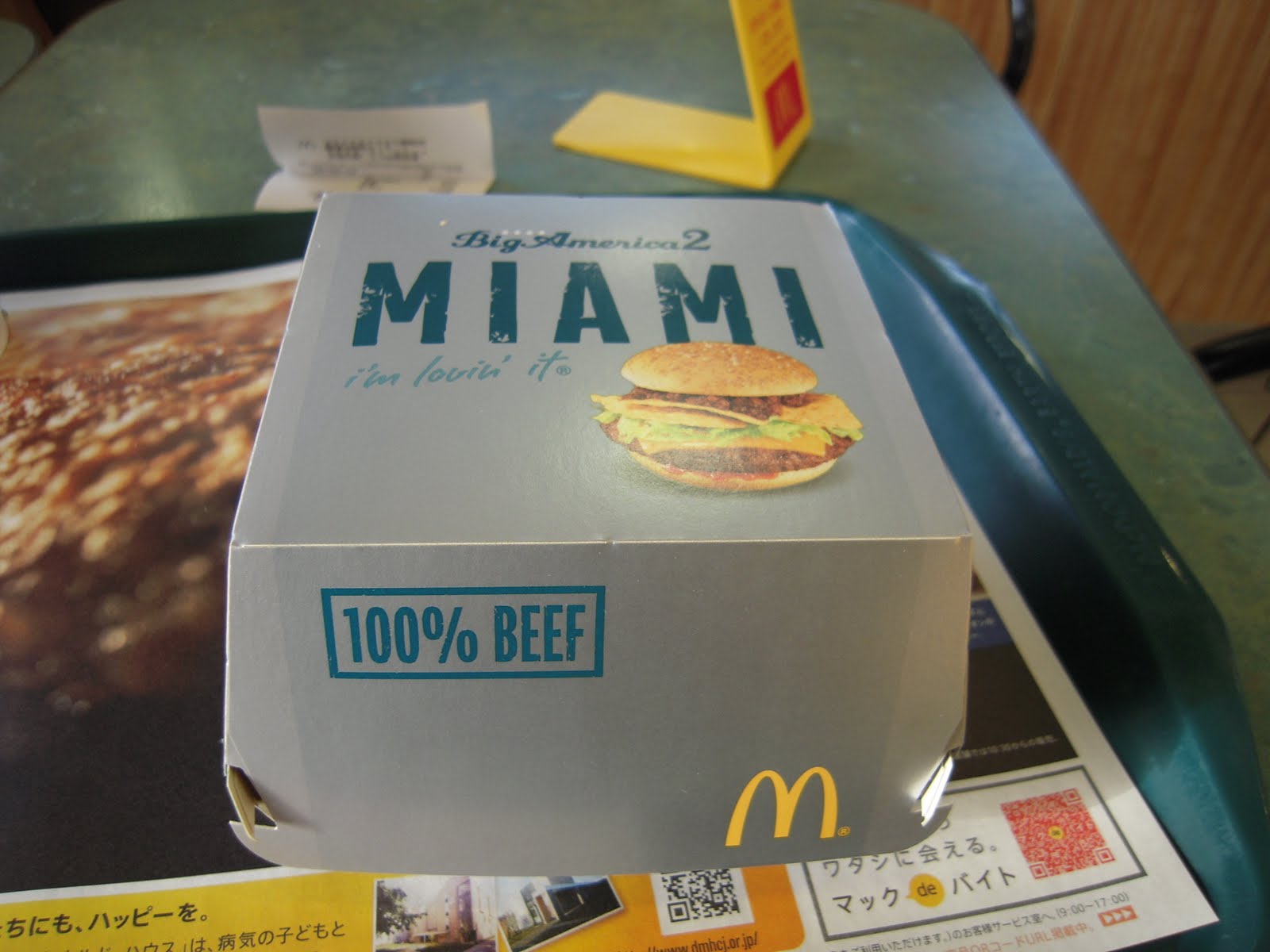 日曜日は亜橋にてカレー喰って(写真忘れた)マックでマイアミバーガー喰った。