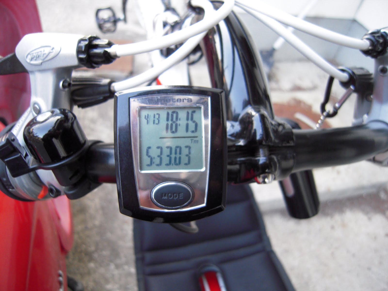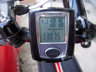 帰宅時のメーター。距離130.75㎞、5時間33分(休憩入れたら実質8時間30分休憩長いw)