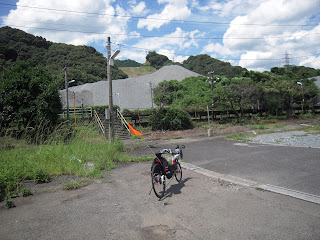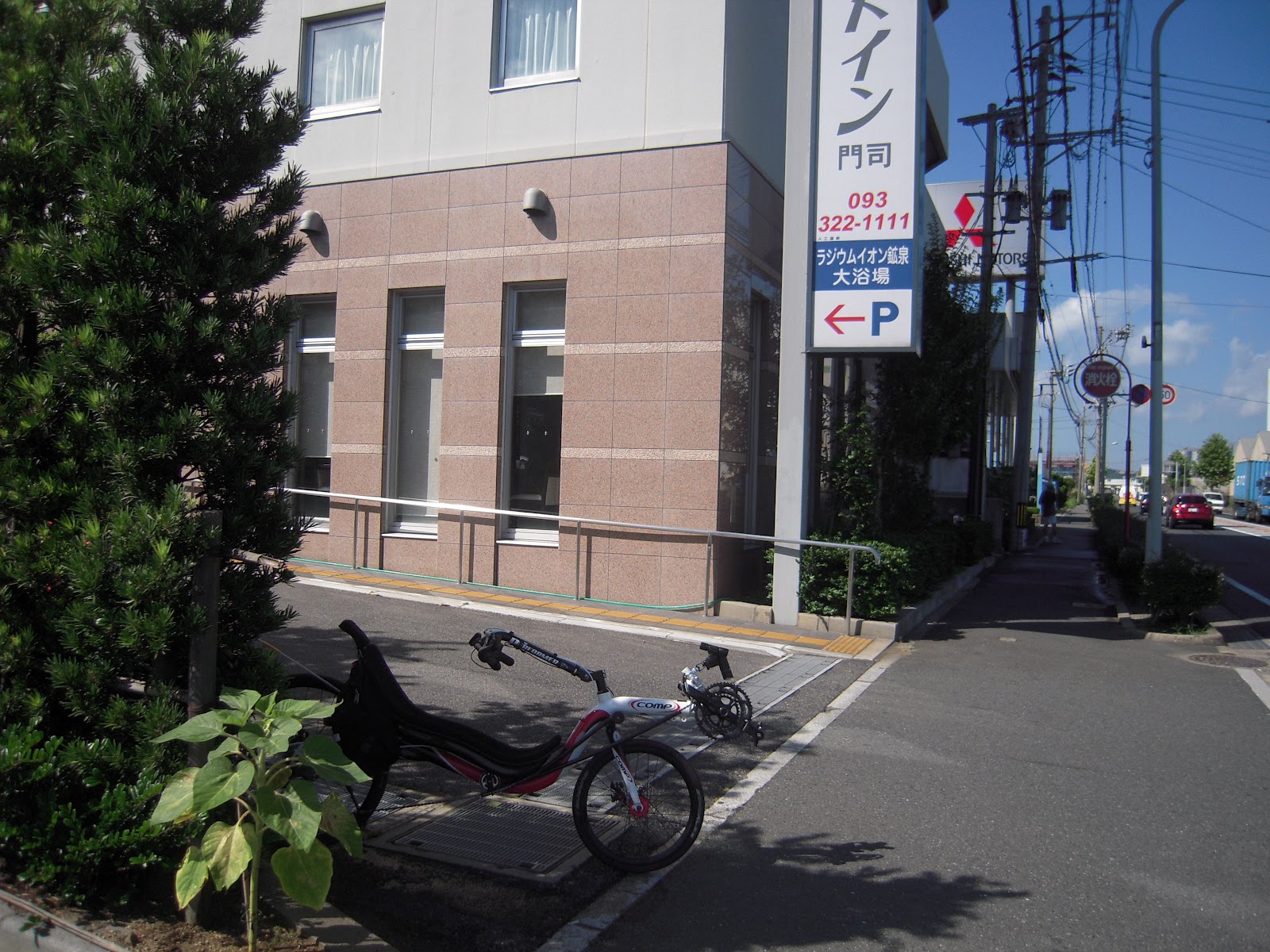 関門トンネルの人道をチャリを押して渡る。エレベーターで下に降りるんだけど、リカは全長が長過ぎて、旗のポールを外して何とか収まった。