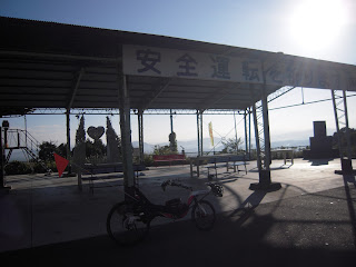 ローレーサー目線(自主規制にて停車時に撮影)だとガードレールの下から海、上は青空。休暇村手前の激坂に足が攣りそうになる。