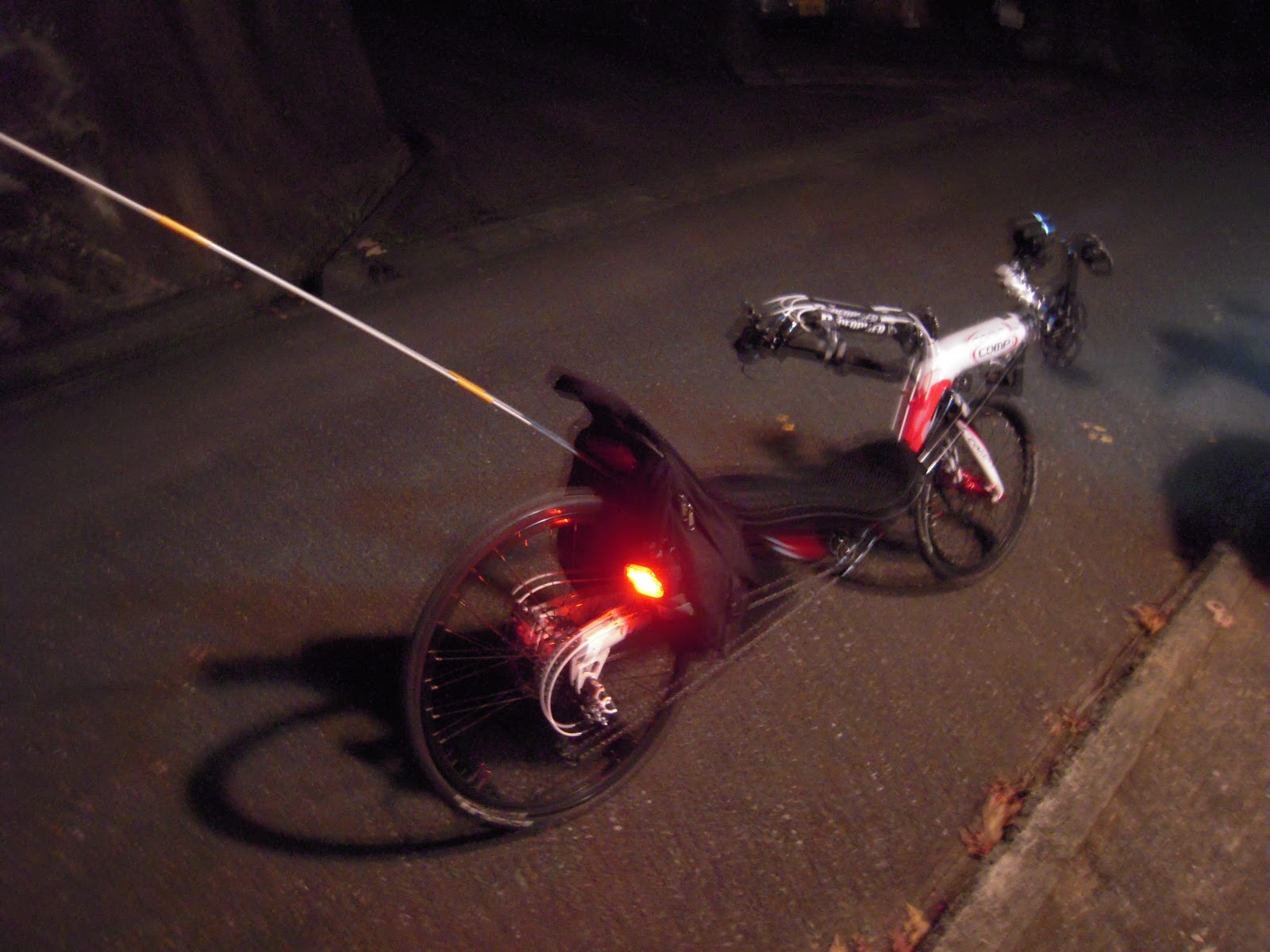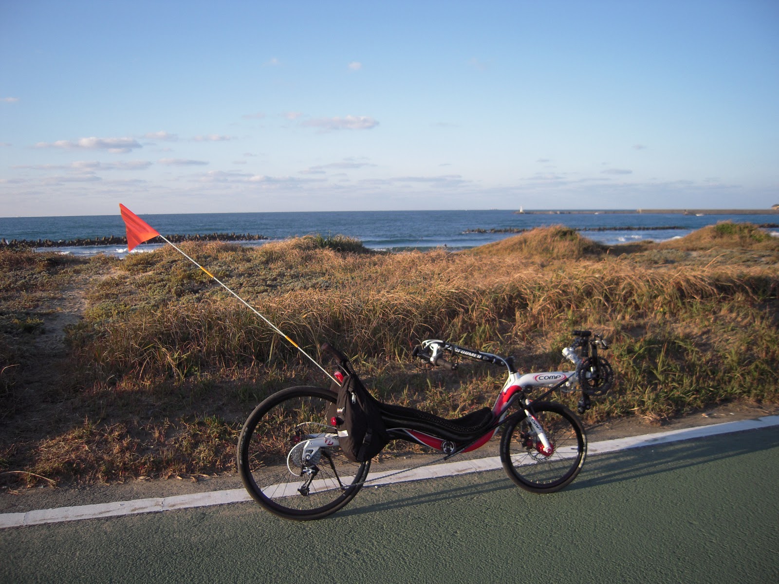 11月18日、盆休み以来久々にリカンベントを引っ張り出す。前に変えたシートクッションの厚み分、体が前に出るのでブームを5㍉伸ばし、チェーンラインを見直し(リターン側をなるべく下側に持って行った。峠での舵角は確保したいのでフォーク側は手を付けず)、Fタイヤ周長も測り直した。