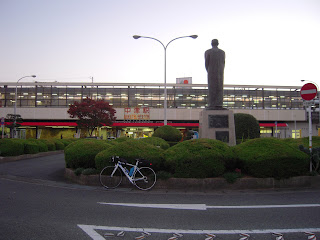 中津駅前、近年は1万円札でお馴染みの福沢幸雄さんの曾祖父の後ろ姿。