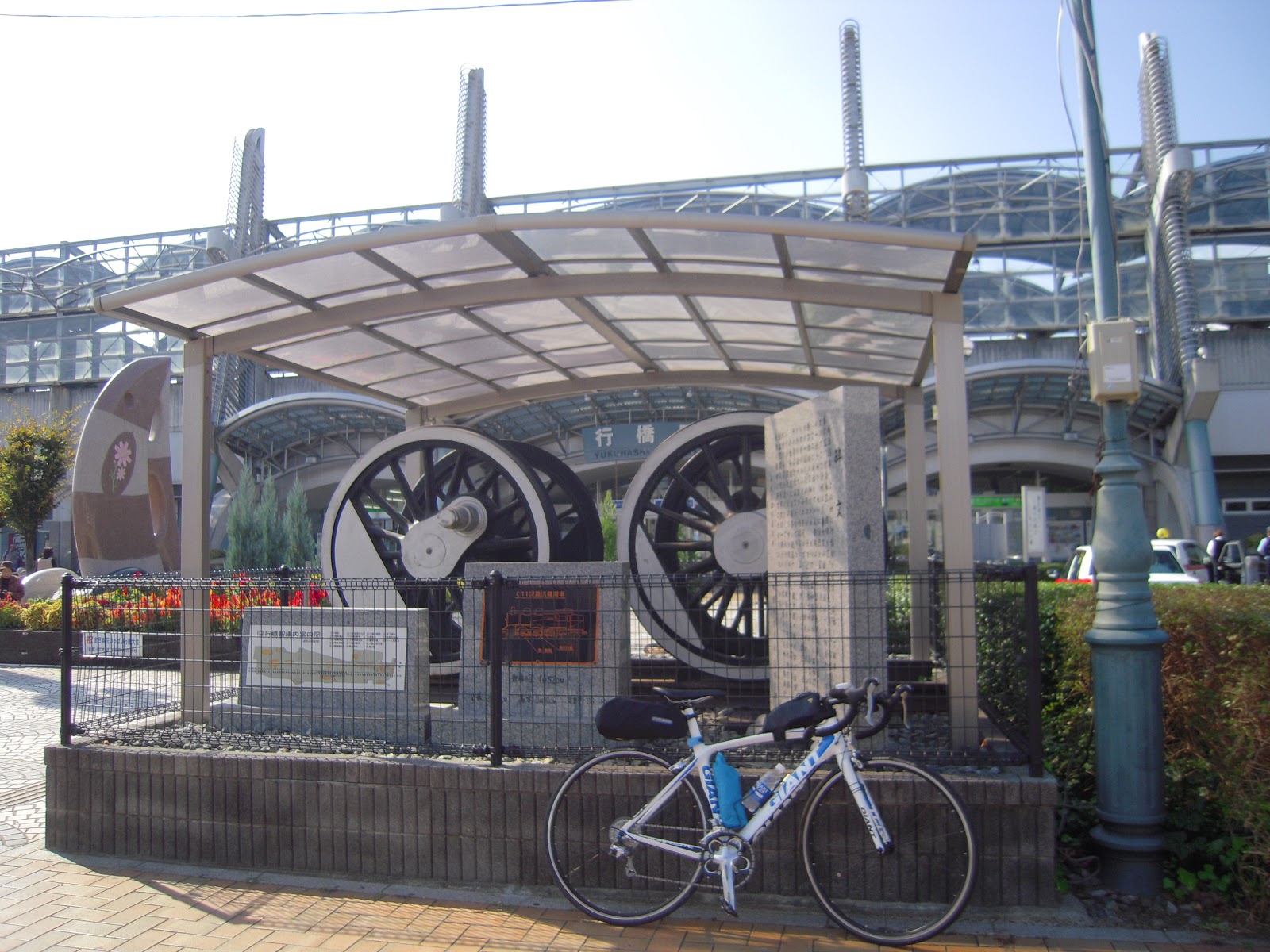 近年高架駅に新生なった行橋駅。駅前にはSL的なモニュメントが色々と。