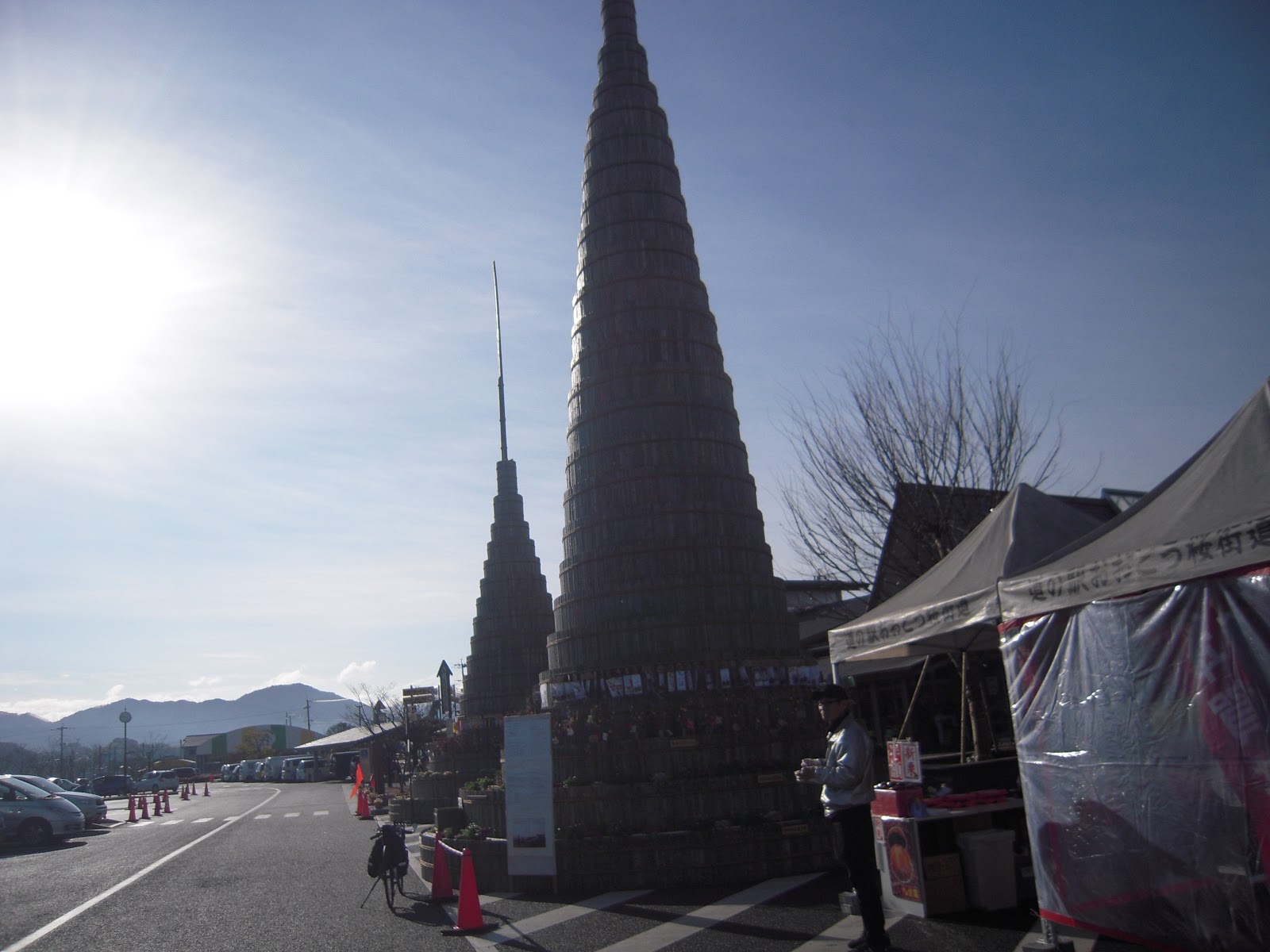 大任の道の駅には日本最大?の25段門松が。平成25年に掛けてるらしい。