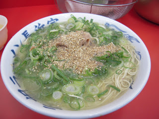 福岡市内にて家1こと長浜家でベタカタネギ多めの昼食、胡麻追加だけでセッティング不要の丁度良い旨さ。