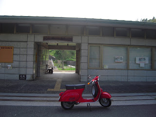 油須原駅、ビンテージなベスパが似合うかなと思ったけど、なんか違和感。OHV時代のカブやドリーム号みたいな国産ビンテージが似合いそう。