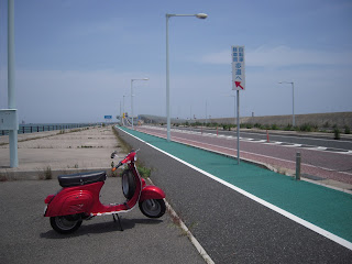 走行600㌔弱で納車されたのでベスパにとってはまだ慣らし始め。朝から某トレイルの前を通過して大任の道の駅で一服。