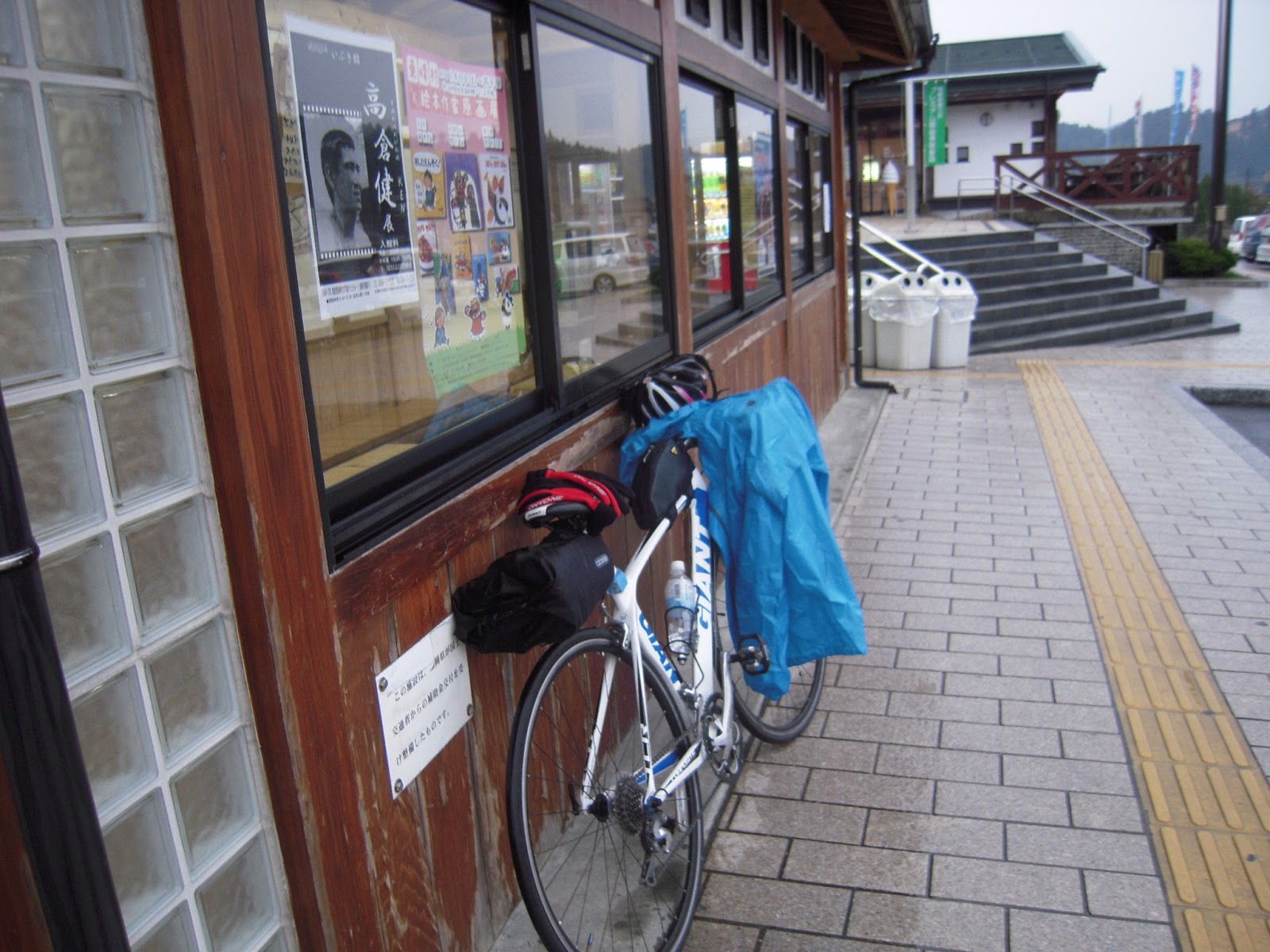 走り続けることを選択、雨で嘉麻峠の登りは体も冷えてサドルバックは水の重みでRタイヤに接触、心が折れて小石原手前で押して歩く。
